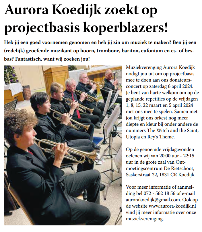 | 01-02-2024 Koperblazers gezocht | Pers Flyer | |||