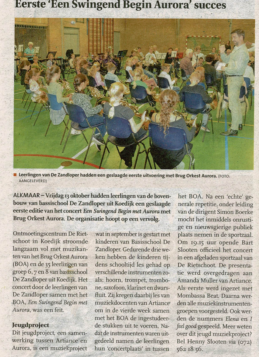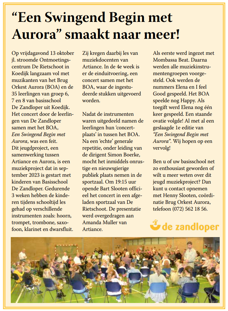 | 13-10-2023 Jeugd muziekproject, een Swingend Begin met Aurora | Verslag | Foto’s | Pers-1 Pers-2 | |