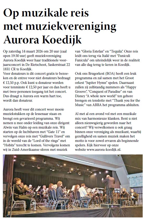 | 14-03-2026 Donateursconcert “op muzikale reis” bron: foto’s Gerrit Stam, Dynamische Hobby Fotografie | Verslag | Foto’s Foto’s | Flyer Pers Pers | |